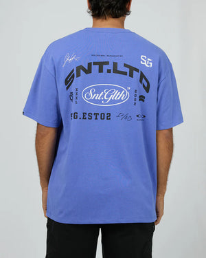 The Bodega Tee Blue offers a relaxed fit with comfortable short sleeves and a classic crew neckline. Featuring unique graphic details on both the front and back, this tee combines style with ease, making it a versatile addition to your casual wardrobe. Perfect for everyday wear.